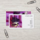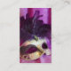 Tarjetas de visita con una foto de una máscara púrpura de la mascarada con las plumas y el purpurina.