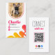 Haga una declaración con esta vibrante y moderna tarjeta de visita diseñada para potenciar la presencia en línea de su mascota influenciador. Con un llamativo marco fotográfico y un moderno diseño de gradiente, esta tarjeta destaca sin duda. La parte frontal muestra el nombre de tu mascota, el título "Influencer Mascota", y la información de contacto, mientras que la parte posterior muestra una clara llamada a la acción ("Conéctate conmigo"), junto con un escaneado código QR y identificadores de medios sociales para una conexión fácil.