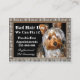 ¿Cuándo el chucho tiene un mún día del pelo, que es ellos que van a llamar? El mascota de la familia va a veces demasiado de largo sin la preparación y esta tarjeta única será un recordatorio rápido que usted está en el negocio para ofrecerles el mejor servicio a su chucho precioso. Corrija con su propia opción y estilo de la fuente cuando usted modifica para requisitos particulares para añadir su propia información.