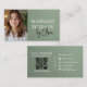Tarjeta De Visita Massage Therapist Photo Metallic Sage Green