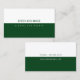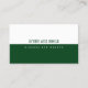Una elegante y minimalista tarjeta de contacto mitad verde / mitad blanca (color de papel elegido), con campos para el nombre, profesión, número de contacto y correo electrónico... para estrictamente ocasiones de negocios cuando necesitas un toque de elegancia y un aspecto contemporáneo.