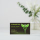 © Sunny Mars Designs - Green Caduceus Alternative Medicine Medical Symbol Modelo de Tarjeta de Negocios Negra y Verde - Exclusivas tarjetas de negocios naturopáticas profesionales con una versión modificada del Caduceus. Símbolo médico alternativo con hojas en lugar de alas y una vid en lugar de serpientes. Concepto de medicina alternativa o uso combinado de medicina alternativa y prácticas médicas convencionales.