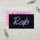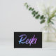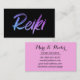 Ésta es una tarjeta de Reiki de visita única y potente magnífica del amo o de Reiki Practitoner que está segura de impresionar. Los colores brillantes del rosa, de la turquesa y de la magenta de la tipografía de Reiki hacen estallar ciertamente contra el fondo negro.