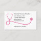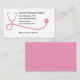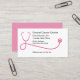 Tarjetas de visita temáticas oncológicas médicas diseñadas con un estetoscopio rosado que representa la lucha por el cáncer en una plantilla simple editable para una oficina de Oncología.