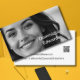 Diseño simple y minimalista de tarjetas profesionales en blanco y negro con código QR al revés. En el frente está la foto: tu imagen aparecerá en blanco y negro. En el anverso hay un lugar para escribir tu nombre como si fuera una firma en la esquina. Tenga en cuenta que cualquiera de los iconos sociales se puede eliminar de la plantilla si no es necesario.