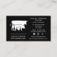 ¿Eres un carnicero que busca una tarjeta de presentación con un mínimo de complicaciones para marketing, networking y marca personal? Este diseño minimalista en negro y blanco con tipografía personalizada de vaca, cerdo y pollo podría ser adecuado para ti. Simplemente ingresa tu información en los campos de texto y listo. Si deseas personalizar aún más el diseño de animales de granja, puedes cambiar la fuente, el color de la fuente, el tamaño de la fuente, el espaciado entre letras y el color de fondo utilizando la herramienta de diseño. También puedes cambiar los íconos de redes sociales para que sean relevantes para tu negocio. El diseño de ganado es tuyo para personalizarlo como desees.