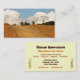 Esta tarjeta de visita presenta The Grain Emporium, un mercado al por menor y mayorista que vende harinas, panes, cereales y pasteles. El frente cuenta con un hermoso paisaje agrícola rural. Es otoño y la cosecha de granos está en marcha. En el oro de primer plano, las filas amarillas y marrones se cortan parcialmente. Mirando por la colina se encuentra la granja con sus silos. Nubes de cúmulo blancas puras y un cielo azul completan la composición. Todo el texto de la parte posterior se puede personalizar para que se ajuste a sus necesidades específicas.
