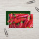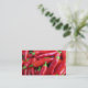 Esta tarjeta de visita anuncia un mercado de pimiento caliente y dulce que también ofrece salsa, rizos y pepinillos. La parte delantera cuenta con chiles de chile rojo escarlata brillante. El lado inverso tiene más pimientos y todo el texto pertinente que se puede personalizar para que se adapte a tu negocio.