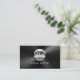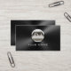 Tarjetas de visita metalizado negras modernas del monograma de acero del disc jockey de DJ.