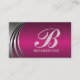 Metalizado gris plateado, rosa fucsia, monograma de tarjetas de visita llamativas. Un diseño moderno, con metalizado curvas de color gris plateado con contorno negro y tu monograma/inicial sobre fondo rosa fucsia brillante. Haga clic en "Personalizar" para tener un mejor resultado y elegir color, y lugar para su inicial. Perfecto para muchos campos industriales, construcción, seguros, financieros, ingenieros y más.
