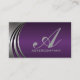 Metalizado púrpura gris plateado, monograma tarjetas de visita atractivas. Un diseño moderno, con curvas metalizado de color gris plateado con contorno negro y tu monograma/inicial sobre fondo morado brillante. Haga clic en "Personalizar" para tener un mejor resultado y elegir color, y lugar para su inicial. Perfecto para muchos campos industriales, construcción, seguros, financieros, ingenieros y más.