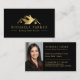 This elegant luxury black and gold real estate agent business card features a gold house logo on the front with upscale stylish text, and a photo along with the contact information on the back. You can replace the logo on the front with your own logo if you wish.