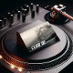 Moderno mezclador de grabador de vinilo metálico girable para DJ tarjetas de negocios. Las fuentes, el tamaño del tipo de letra, el color del tipo de letra y la posición del tipo de letra se pueden personalizar según el estilo.