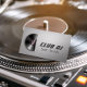 Moderno mezclador de grabador de vinilo girable DJ tarjetas de negocios de fondo Metalizado plateado blanco. Las fuentes, el tamaño del tipo de letra, el color del tipo de letra y la posición del tipo de letra se pueden personalizar para adaptarlas a su estilo