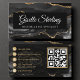 Tarjeta De Visita Microblading QR Code Black Gold Agate Luxury