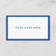 Estas tarjetas de visita presentan un diseño mínimo en azul y blanco. Personalice el texto con su información.