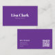 A sleek and modern layout built around a solid purple color block, featuring refined serif typography and a clean QR-focused contact section. The minimalist composition and monochrome palette create a bold, professional identity ideal for a makeup artist who prefers simplicity, clarity, and contemporary branding.