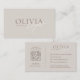 Elevate your brand's presence with this elegant and customizable business card design, featuring a soft, neutral taupe background that exudes understated sophistication. Your name takes center stage in a bold, clean font, beautifully complemented by a flowing script for your service or specialty. The reverse side offers comprehensive contact information, including a convenient QR code and social media links, all presented with a minimalist yet impactful layout for a truly refined impression.