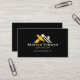 Make a powerful statement with this modern business card, blending minimalist aesthetics with a touch of luxury. The design features a chic gold hammer icon seamlessly incorporated into a white house outline, set against a deep black background. This sophisticated color palette is perfect for construction professionals, architects, and builders who want to convey professionalism and high-end service. This card is designed to impress and leave a lasting impression on clients, highlighting your attention to detail and refined business approach.