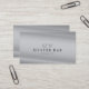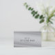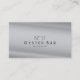 This minimalistic business card features art deco style fonts against a silver/gray background.