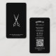¿Buscas una tarjeta de personalizable para tu barbería? Nuestro elegante diseño minimalista de Barbershop Scisor Black Hair Stylist con código QR es la adición perfecta a su establecimiento. Presenta un diseño sencillo de tijeras, llamativas y seguro que atraerán a los clientes. La tarjeta es totalmente personalizable, lo que le permite añadir su propio texto para promocionar sus servicios u ofertas especiales.