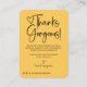 Esta tarjeta de agradecimiento para clientes de negocios, sencilla y elegante, es perfecta para los negocios modernos y modernos. Presenta tipografía manuscrita con las palabras "¡Gracias, espléndido!" Acompañando este texto hay un corazón lindo y un serif moderno y minimalista encima de un fondo mostaza amarillo. La tarjeta incluye un mensaje de agradecimiento, un mensaje de descuento, su información de medios sociales, su logotipo y la información de su empresa, todo lo cual se puede personalizar a su gusto. Este diseño elegante, único, minimalista y moderno impresionará sin duda a sus clientes y fomentará el retorno al negocio. ***NOTA IMPORTANTE DE DISEÑO: Para cualquier solicitud de diseño personalizado como solicitudes de productos coincidentes, cambios de color, cambios de posición o cualquier otra solicitud de cambio, haga clic en el botón "mensaje" o envíe un correo electrónico al diseñador directamente a lafemme.art@gmail.com. Incluso puede enviarle un correo electrónico solicitando un diseño completamente personalizado y nuevo.