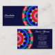Una tarjeta de visita con un atractivo motivo medio kaleidoscópico de mandala. Nombre comercial, etc. en el frente, con otros detalles al revés, con una variación sobre el mismo motivo.