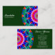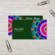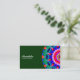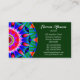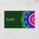 Una tarjeta de visita con un atractivo motivo medio kaleidoscópico de mandala. Nombre comercial, etc. en el frente, con otros detalles al revés, con una variación sobre el mismo motivo.