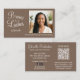 Tarjeta De Visita Mocha Brown Script Photo QR Code Brows and Lashes