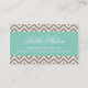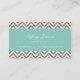 Tarjeta De Visita Mocha Brown y Aqua Modern Chevron Stripes