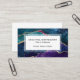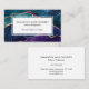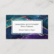 Elegante tarjeta profesional de negocios con su nombre, título o profesión y eslogan o eslogan con coloridos tonos de agate azul, púrpura y agua con venas metálicas de Relieve metalizado de oro y estrellas brillantes. Un fondo blanco de coordinación está en la parte posterior de la tarjeta e incluye sus datos de contacto.