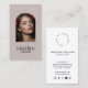 Eleva tu marca de moda con nuestro diseño de tarjetas de visita. Con un estilo editorial elegante y de alta moda, con una foto de personalizable en arco, este diseño es una declaración sorprendente que cautiva la atención. Personalice su nombre o marca en la parte delantera y muestre su información de contacto y los detalles de los medios sociales en la parte posterior. Es más que una tarjeta, es una introducción glamurosa a tu destreza de belleza. Diseño © 1201AM Design Studio | www.1201am.com