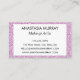 Esta tarjeta de moda, girly y glam tiene tu nombre completo y un purpurina lila púrpura brilla fondo en ambos lados, y tu nombre, título y detalles de contacto en la parte posterior. Personalice fácilmente esta tarjeta de visita agregando su nombre completo, título del trabajo y detalles de contacto. Haga clic en "personalizar más adelante" para cambiar el color del texto, el estilo y el tamaño del tipo de letra. Esta tarjeta de moda es perfecta para un artista de maquillaje, peluquero, asesor de belleza o propietario de un salón de belleza.