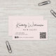 tarjeta de visita rosa claro de moda con su nombre o marca mostrada en un guión elegante de firma y tipo de negocio o título en letras modernas y limpias. Ingresa tu dirección de sitio web para crear un código QR que los clientes y clientes puedan escanear para obtener una lista de tus productos, servicios, horas, etc., y agrega tus datos de usuario de instagram y facebook para que los clientes los sigan y se conecten contigo en los medios sociales. Puede agregar información adicional en la parte posterior o dejarla en blanco.