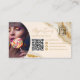 Aumente su marca profesional con esta impresionante tarjeta de presentación y estilo de cabello. Con un diseño de mármol de Relieve metalizado dorado de moda, una tipografía elegante y acentos lujosos, esta tarjeta le aporta un toque de sofisticación a su negocio. La parte posterior incluye un código QR para acceder fácilmente a tus servicios, iconos de medios sociales y espacio para tu sitio web y correo electrónico, junto con una foto circular en negrita para un toque personal. Perfecto para estilistas modernos que buscan un diseño atractivo y profesional.