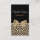 Difunde la palabra sobre tu tienda de moda nueva y de moda con estas elegantes tarjetas de visita de moda y de impresión jaguar en la popular sombra marrón claro de la arena. Estas tarjetas de visita adorables y onduladas están adornadas con una cinta de bronceado atada a un elegante arco. Personalice estas tarjetas de visita de impresión animal de moda añadiendo el nombre de su tienda y ocupación, su nombre profesional y su información de contacto.Imagen plana impresa, no cinta real.