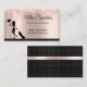Elegante Relieve metalizado Rosa Rubor Elegante y Purpurina Polka Negro Dot Drips Limpieza Tarjetas De Negocios.