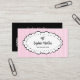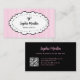 Estas elegantes y extravagantes tarjetas de visita están decoradas con un marco blanco y negro esculpido a mano con un arco de moda, con un fondo rayado en blanco y rosa moda. La parte posterior de la tarjeta de visita es negra con texto rosa y tiene un código QR escaneado. Perfecto para cualquier tipo de actividad o negocio femenino, elegante, como spa, salón, moda, boutique o vintage.