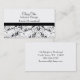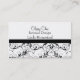 Represente su negocio con estas tarjetas de visita con clase y moda personalizadas. uso modificado para requisitos particulares el 100% la plantilla de encargo de insertar y/o de añadir cualquier fraseología necesaria poner su nombre e imagen del negocio en su propia tarjeta personal. Un absoluto esencial para que ayuda lleve su negocio y nombre al nivel siguiente de profesionalismo. Las tarjetas ofrecen un fondo blanco con un remolino negro del modelo de la característica del damasco en la parte inferior. Las tarjetas son bilaterales con un fondo blanco coordinado en la parte trasera. El tipo de papel se puede modificar para requisitos particulares a su opción deseada, usando la característica del "personalizar". Diverso tipo de papel puede reflejar una diferencia en color de fondo.