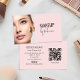 Tarjeta De Visita Modern Blush Pink Script Font QR Code Photo Makeup