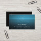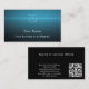 Customize this unique modern business card template with your name, business name and contact details. This stylish black and blue business card with clear simple white script can be edited for your purposes. Add your logo, name and title or business on the front. On the back is a place for more custom text and your QR code. You could add a tagline or services offered or opening hours. Be sure to personalize the back with the company address, telephone number, email or website address. I created this unique design with a turquoise blue light burst on a black background. The blue gradient looks cool and trendy. It would be a great business card template for an engineer, electrician, energy or solar consultant, computer technology business, tech sales, IT business or web designer, security service, property manager, or pastor.