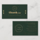 Leave a lasting impression with this elegant dark green and gold business thank you card design. The deep hunter green background is beautifully accented by sophisticated gold typography and minimalist dot details, creating a rich and highly professional aesthetic for your brand. This premium template is fully customizable to perfectly reflect your unique identity. You can easily add your own company logo in the dedicated placeholder on both the front and back, edit the heartfelt thank you message, change font colors, and include your specific business details or social media links. Designed to elevate your product packaging, this stylish enclosure card helps reinforce your brand identity, build unwavering trust with your buyers, and leave a memorable, professional impression on every single customer who supports your small business.