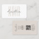 Modern Hair Stylist Beauty Salon White Sand Script business card with QR code