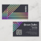 Make a bold statement with this modern business card featuring sleek holographic stripes on a dark background for an eye-catching, professional look. The back includes your contact details, a scannable QR code, and elegant typography that balances creativity with sophistication. Perfect for event planners, designers, artists, and entrepreneurs who want a vibrant, memorable introduction.