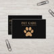 Glittery golden paw against deep black background modern business card for pet services.
