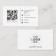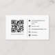 White or custom, modern, elegant and professional business card design with template fields for name, company name/title, logo QR code (photo or other graphic) and contact information including custom icon. Only upload icons that you have permission to use. Use the resize tools to change the background color, move and resize elements.