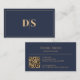 Tarjeta De Visita Modern Minimalist Dark Blue Initials QR Code
