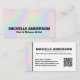 Pastel Rainbow Holographic Business Card. This modern and eye-catching design features a soft pastel rainbow holographic pattern with shades of pink, blue, yellow, green, and purple for a dreamy, professional look.