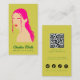Tarjeta De Visita Modern Pink Lime Green Hair Styling Flat Design QR