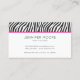 Tarjeta De Visita Modern Pink Zebra Print Custom Company Logo